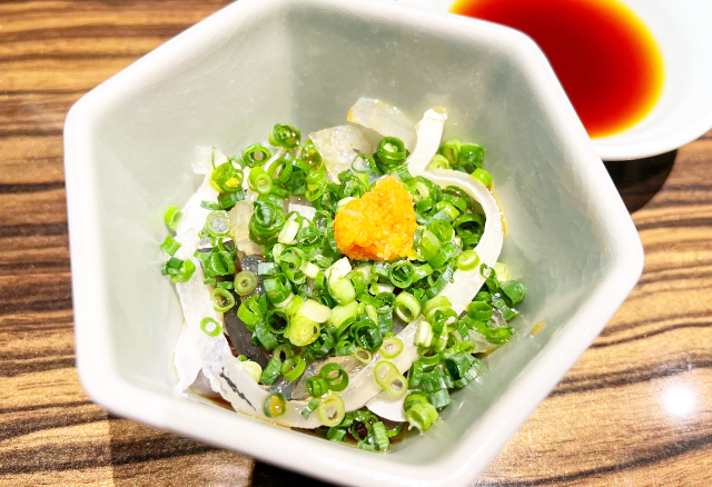 もう一つ、魚の皮を使用した絶品料理をご紹介したいと思います。それは魚の皮を熱湯にサッとくぐらせ、冷水で締めた皮の湯引き。こちらは、あっさりとポン酢にもみじおろしとネギを添えて食べると、これまた至高の味でございます。女性に嬉しいコラーゲンも先ほどの皮せんべいと比べると摂取しやすいですしね。熱湯をくぐらせる代わりに、上から熱湯をかけるという行程でもバッチリ美味しいです。使用される魚種としては、